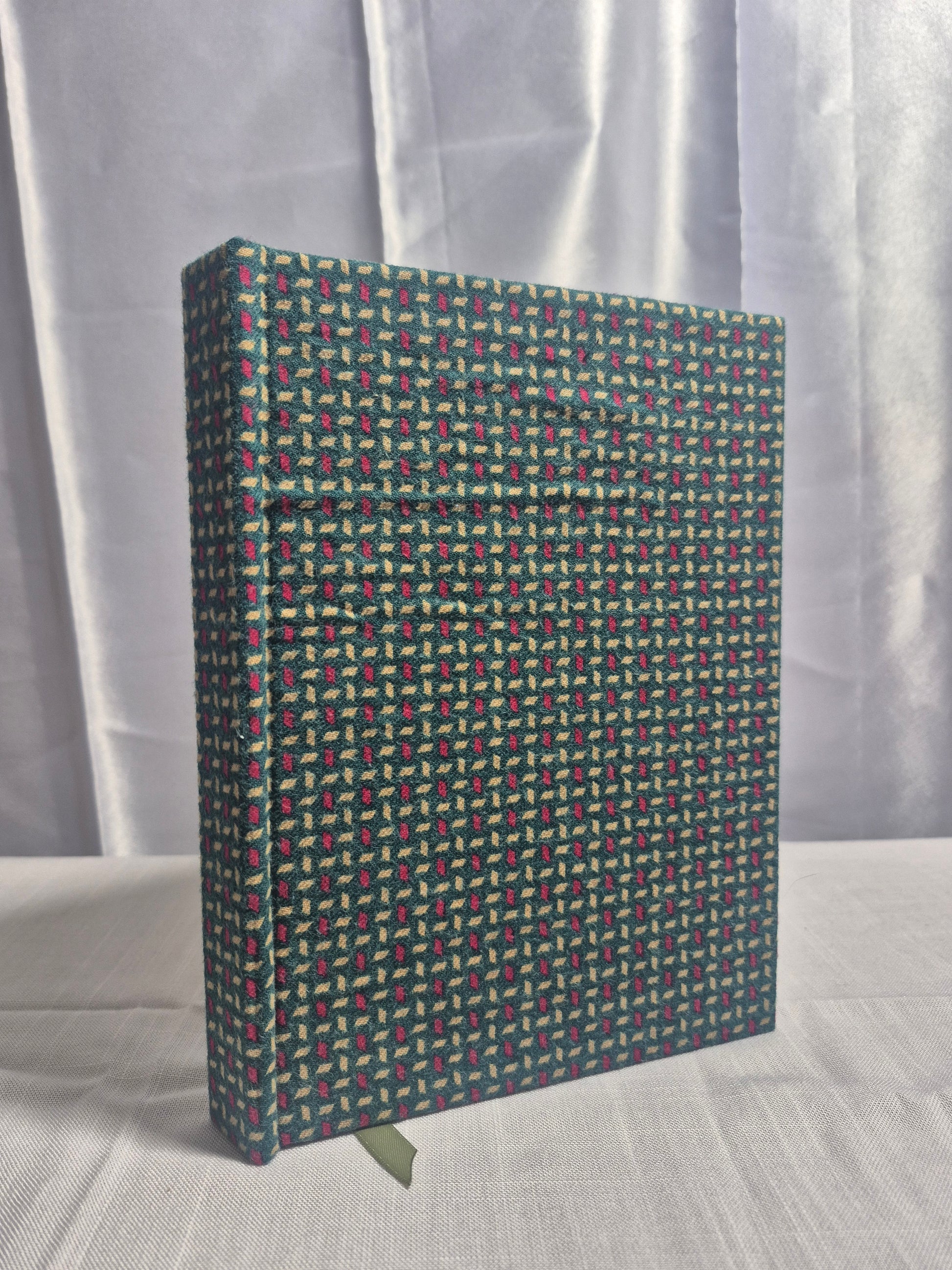 Handbound and stitched in my studio in England, Evergreen is a journal/sketchbook with brushed cotton cover.